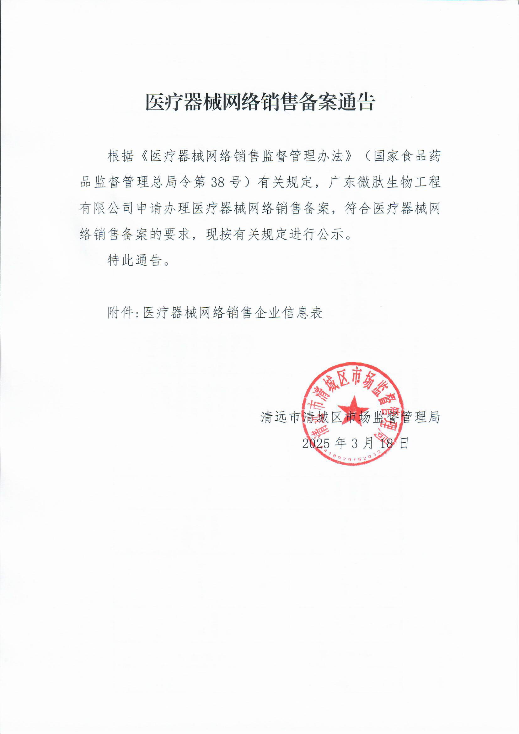 1 | 首次備案 | (清城)網(wǎng)械銷售備字 ﹝2025﹞第15號 | 2025/3/13 | 廣東微肽生物工程有限公司 | 入駐類 | 91440101MA5D39AX2B | 廣東省清遠市清城區(qū)龍?zhí)伶?zhèn)廣清大道988號時代天韻花園21號樓5層08號 | 廣東省清遠市清城區(qū)龍?zhí)伶?zhèn)廣清大道988號時代天韻花園21號樓2層14號 | 阿里巴巴 | (浙)網(wǎng)械平臺備字[2018]第00001號 | 無 | 無 | 無 | 無 | 無 | 無 |
