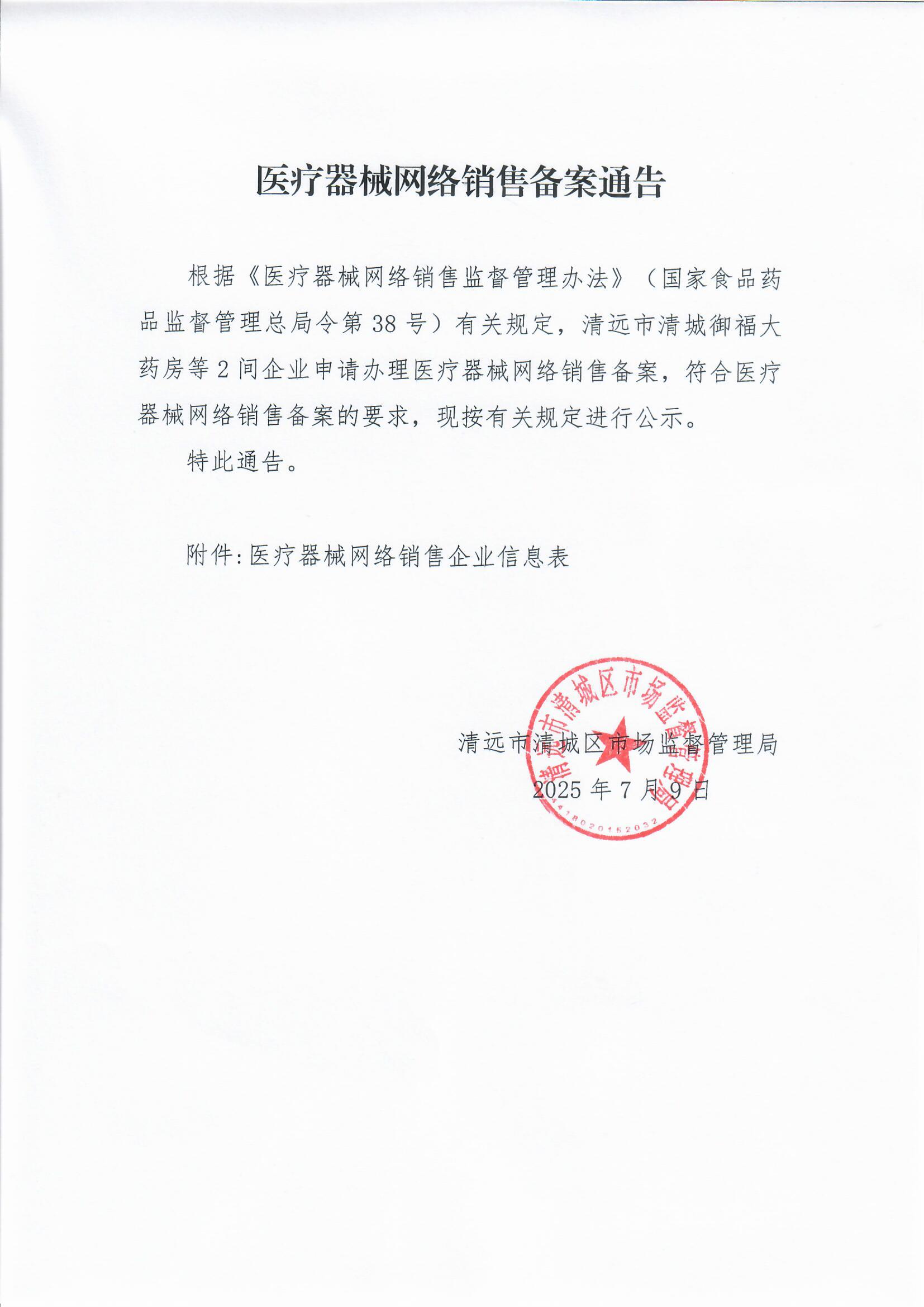 (清城)網械銷售備字 ﹝2025﹞第26號