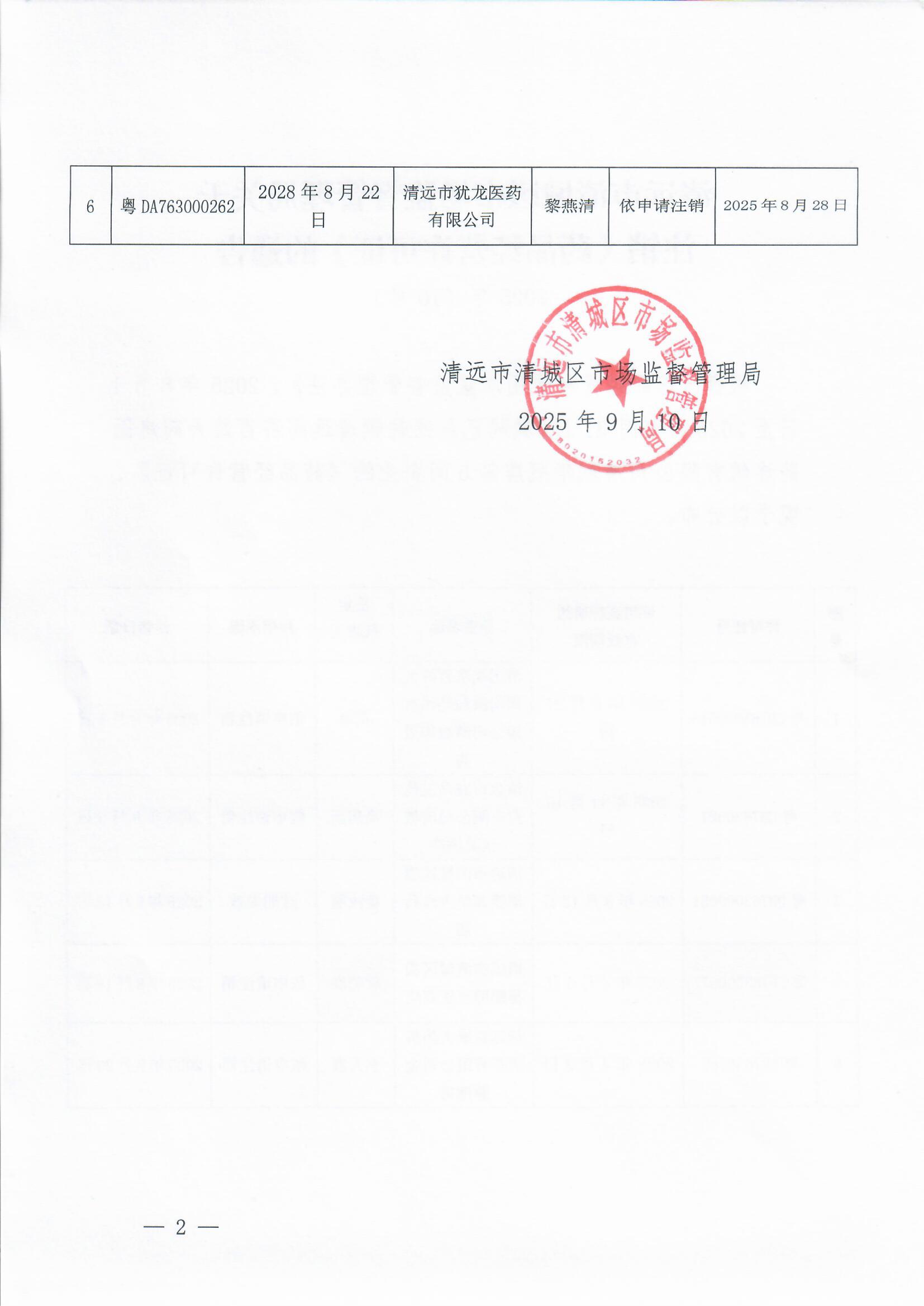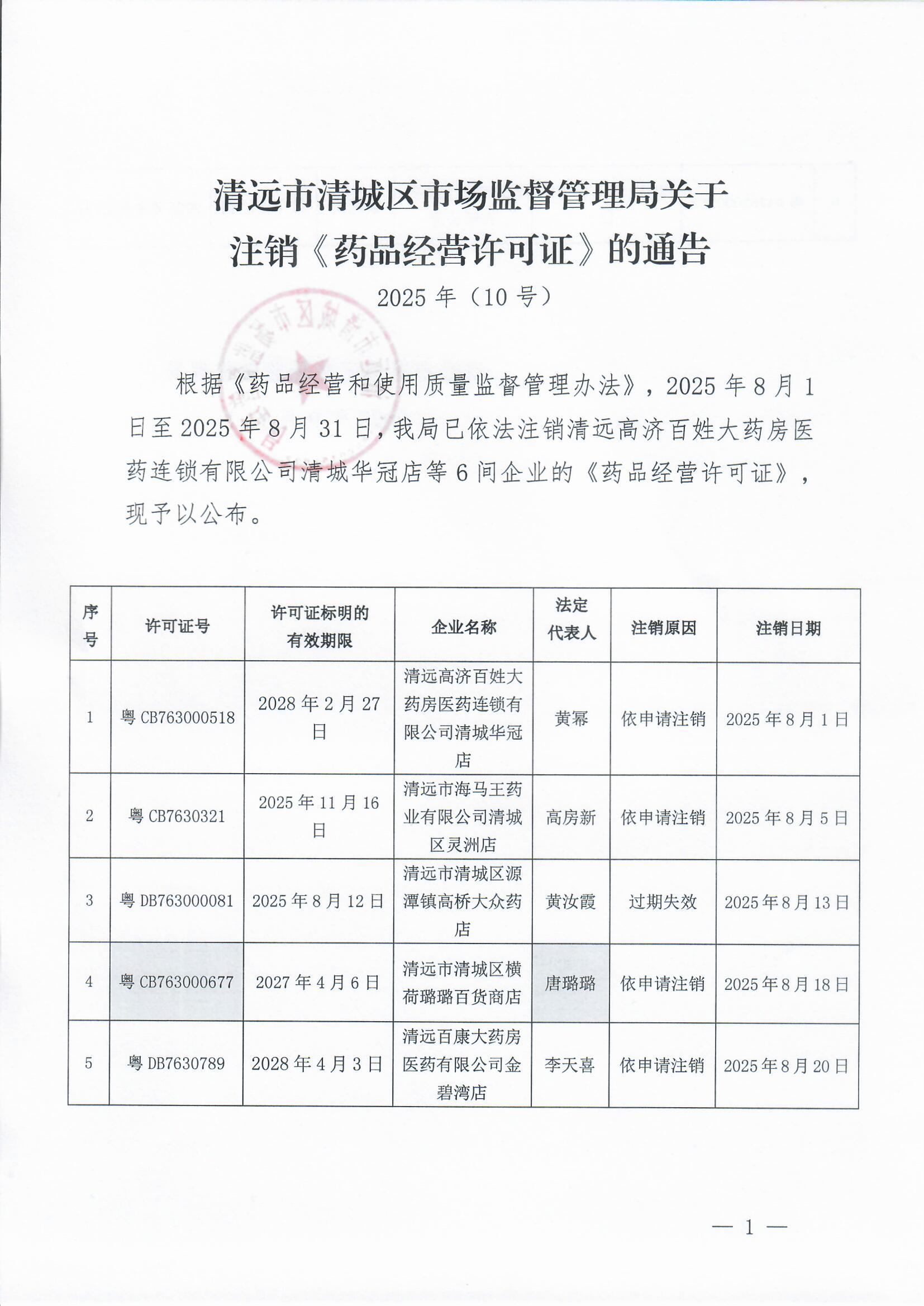 清遠市清城區市場監督管理局關于注銷《藥品經營許可證》的通告