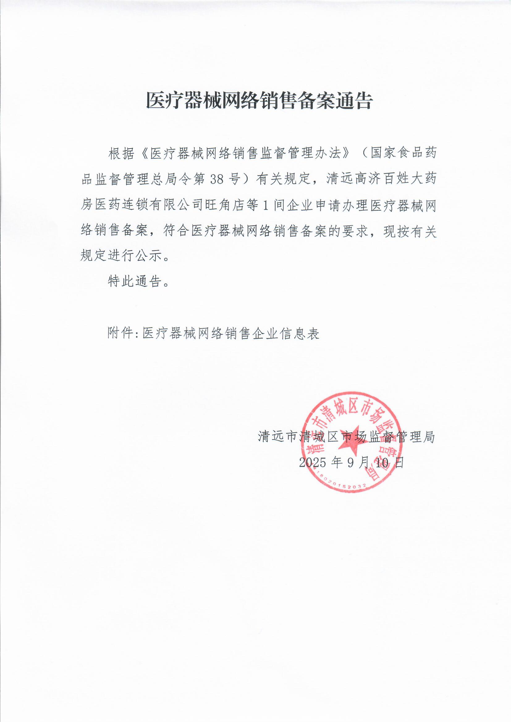 1 | 變更備案 | (清城)網(wǎng)械銷售備字 ﹝2024﹞第098號 | 2025/9/3 | 清遠高濟百姓大藥房醫(yī)藥連鎖有限公司旺角店 | 入駐類 | 914418025778829762 | 清遠市清城上廓北江金廓小區(qū)三座首層商鋪26號 | ****** | 餓了么;京東到家;高濟藥急送;美團網(wǎng);抖店、抖音電商 | (滬)網(wǎng)械平臺備字(2018)第00004號;(滬)網(wǎng)械平臺備字(2018)第00002號;(京)網(wǎng)械平臺備字(2020)第00010號;(京)網(wǎng)械平臺備字(2018)第00004號;(滬)網(wǎng)械平臺備字[2022]第00002號 | 無 | 無 | 無 | 無 | 無 | 無 |