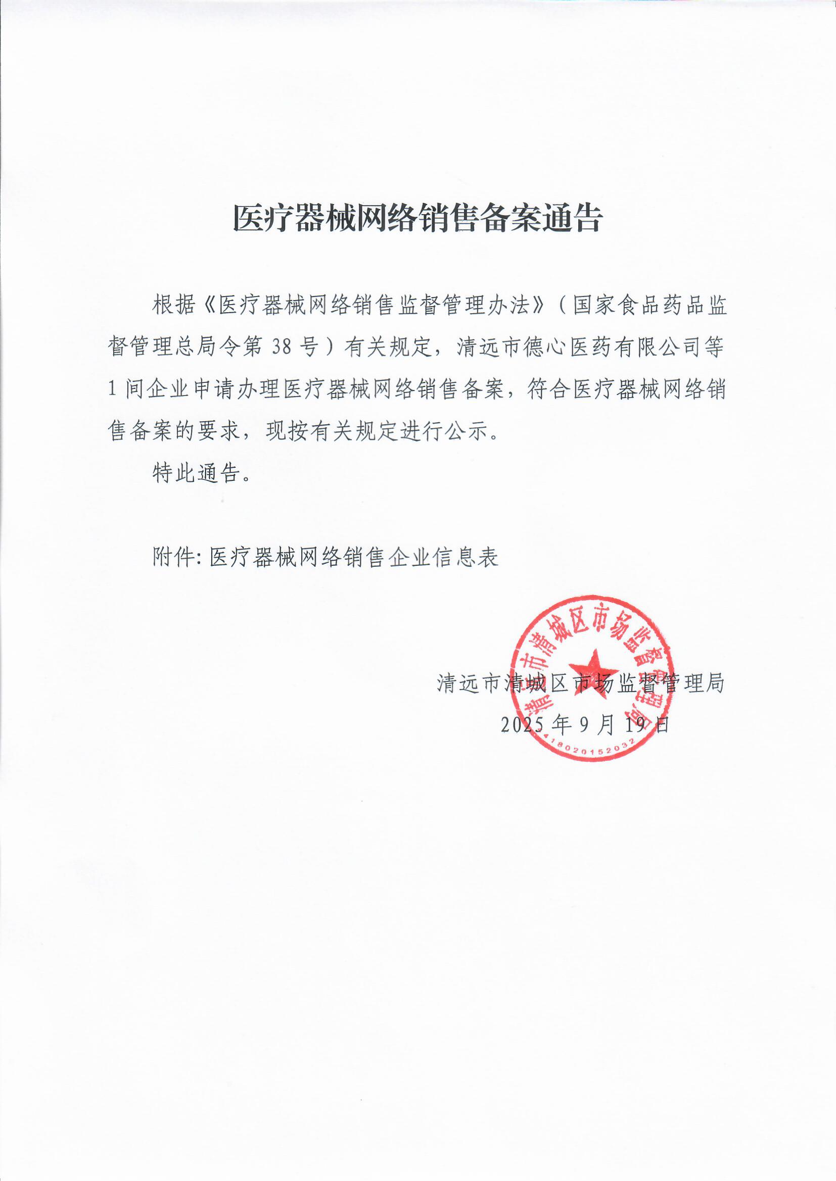 1 | 首次備案 | (清城)網(wǎng)械銷(xiāo)售備字 ﹝2025﹞第34號(hào) | 2025/9/11 | 清遠(yuǎn)市德心醫(yī)藥有限公司 | 入駐類(lèi) | 91441802MAE5BWQY8P | 清遠(yuǎn)市清城區(qū)城北二路西25座君華大廈首層商鋪02號(hào) | ****** | 美團(tuán)網(wǎng);拼多多商城 | (京)網(wǎng)械平臺(tái)備字(2018)第00004號(hào);(瀘)網(wǎng)械平臺(tái)備字[2018]第00003號(hào) | 無(wú) | 無(wú) | 無(wú) | 無(wú) | 無(wú) | 無(wú) |