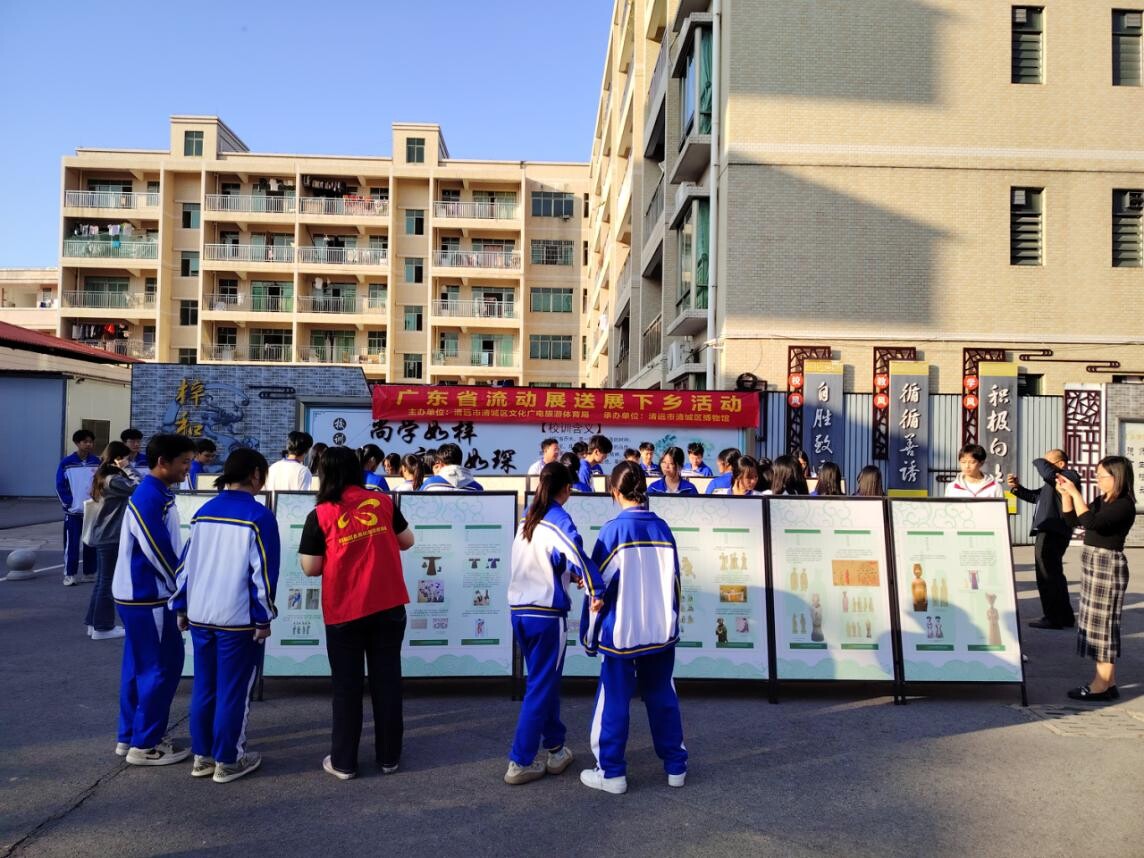 展覽共展出9場,其中送展進基層8場。12月12日,巡展活動走進了位于石角鎮的清遠市梓琛中學,為學生們上了一堂學歷史、識傳統、辯文物的戶外課程。