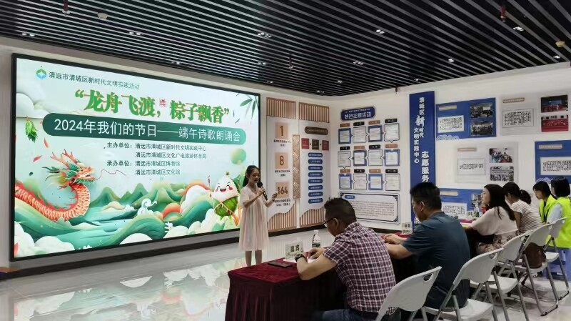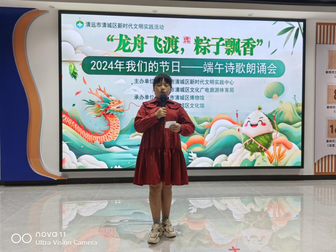 6月8日,“龍舟飛渡,粽子飄香”2024年我們的節日——端午詩歌朗誦會在清城區文化藝術中心大樓綜合展廳隆重舉行。本次活動由清城區新時代文明實踐中心、清城區文化廣電旅游體育局主辦,清城區博物館和清城區文化館承辦。本次活動旨在弘揚中華優秀傳統歷史文化,以詩歌朗誦的形式紀念偉大愛國詩人屈原,促進我區城市文明建設。