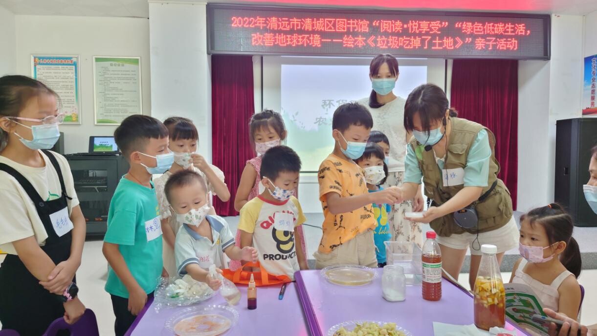 為提高清城讀者對于現(xiàn)有環(huán)境問題的意識,并動員讀者們參與到環(huán)?;顒又?,通過綠色低碳生活,改善地球的整體環(huán)境,10月5日,2022年清遠(yuǎn)市清城區(qū)圖書館“閱讀?悅享受”“綠色低碳生活,改善地球環(huán)境——繪本《垃圾吃掉了土地》”親子活動在三樓親子閱覽室開展。