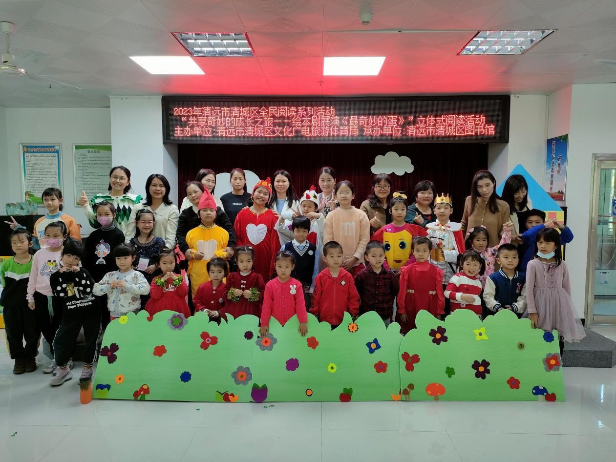 3月5日上午,2023年清遠市清城區全民閱讀系列活動“共享奇妙的成長之旅——繪本劇展演《最奇妙的蛋》”立體式閱讀活動在清城區圖書館三樓親子閱覽室開展,25個親子家庭共同觀看《最奇妙的蛋》繪本劇展演,孩子們都積極參與互動,現場氣氛熱烈。