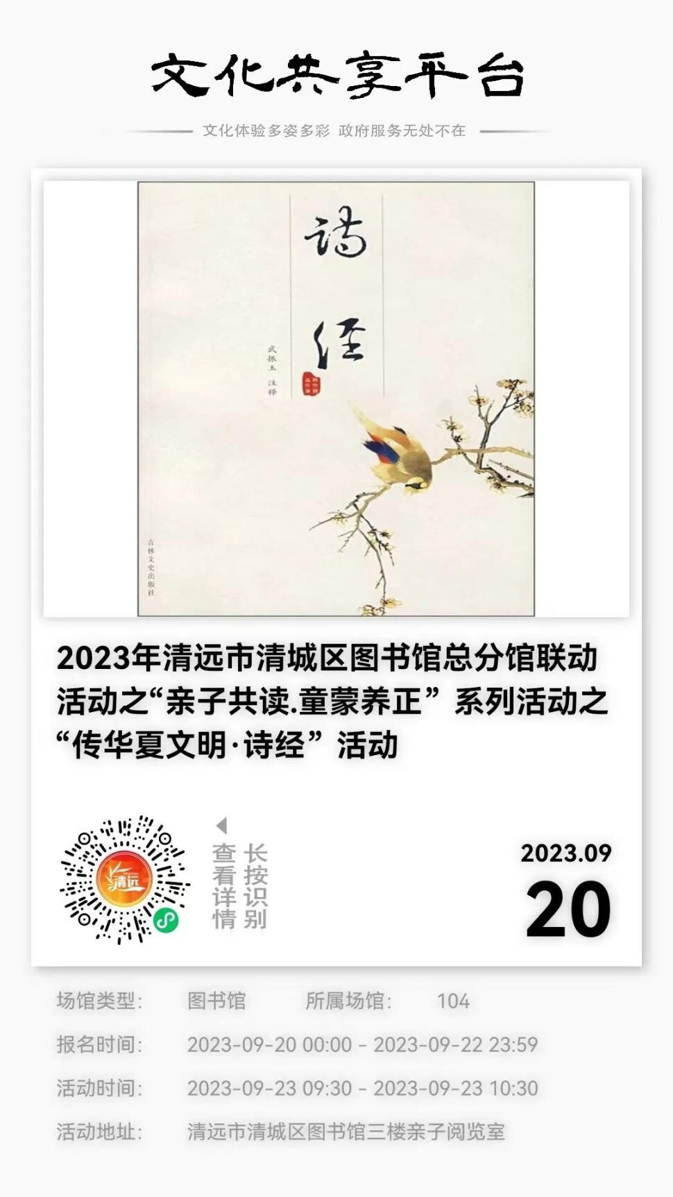 2023年清遠市清城區圖書館總分館聯動活動之“親子共讀.童蒙養正”系列活動之“傳華夏文明·詩經”活動