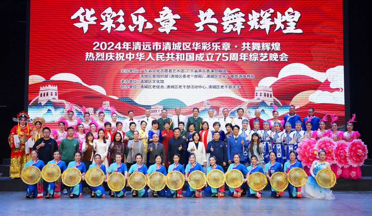 2024年11月23日,由廣東省文化志愿者藝術(shù)團(tuán)、廣東省聲樂(lè)表演合唱團(tuán)、清城區(qū)委組織部(清城區(qū)委老干部局)、清城區(qū)文化廣電旅游體育局主辦,清遠(yuǎn)市清城區(qū)文化館承辦,清城區(qū)老促會(huì)、清城區(qū)老干部活動(dòng)中心、清城區(qū)老干部大學(xué)協(xié)辦的“華彩樂(lè)章·共舞輝煌”——熱烈慶祝中華人民共和國(guó)成立75周年綜藝晚會(huì)在清遠(yuǎn)市文化館小劇場(chǎng)舉行。