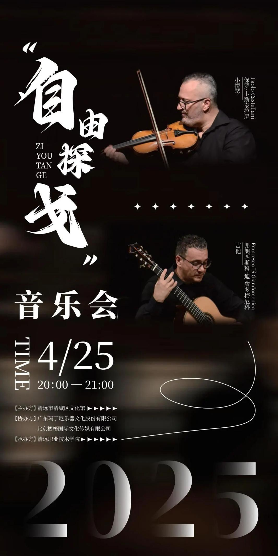 此次音樂會由清遠市清城區(qū)文化館主辦,廣東瑪丁尼樂器文化股份有限公司、北京棲梧國際文化傳媒有限公司協(xié)辦,清遠職業(yè)技術(shù)學(xué)院承辦。