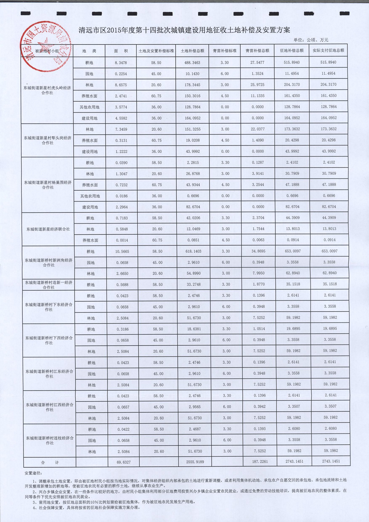 清遠(yuǎn)市區(qū)2015年第十四批次征地補(bǔ)償安置方案