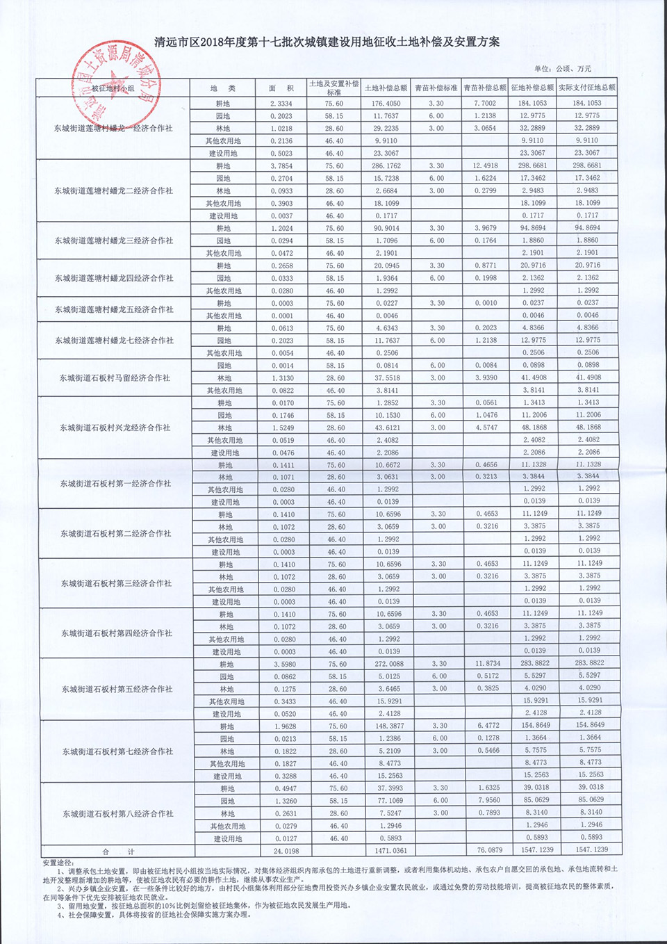 清遠市區2018年度第十七批次征地補償安置方案