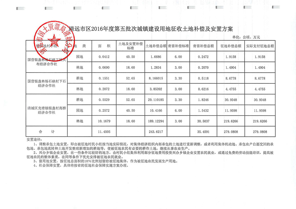 清遠(yuǎn)市區(qū)2016年第五批次征地補(bǔ)償安置方案