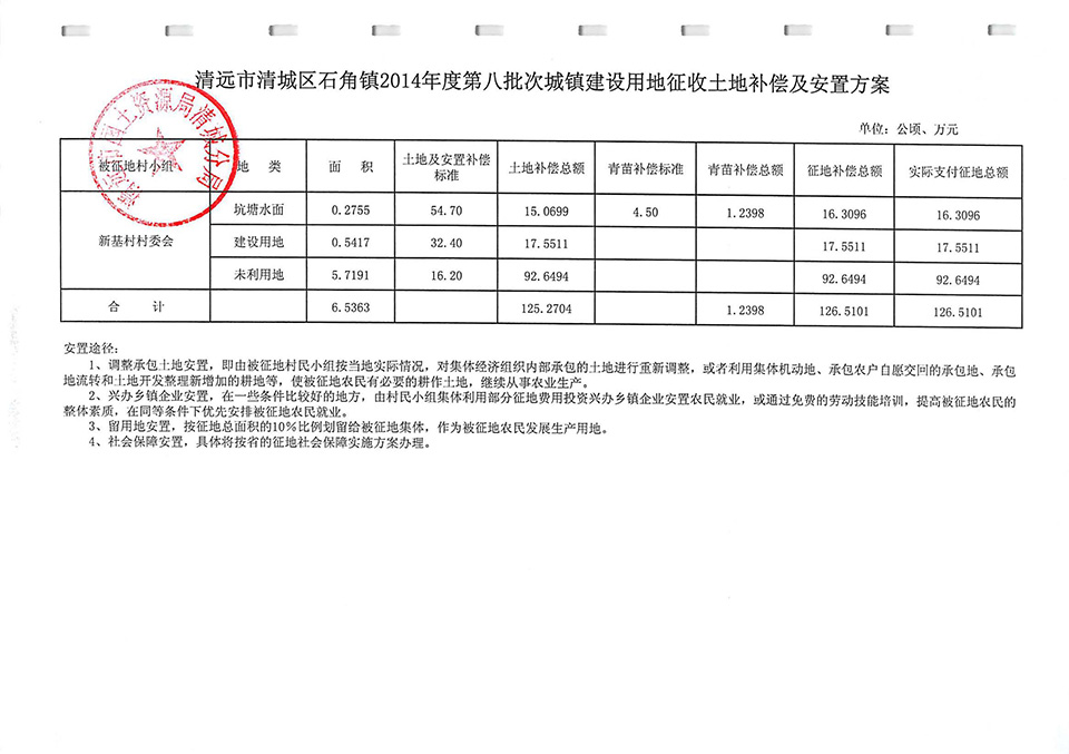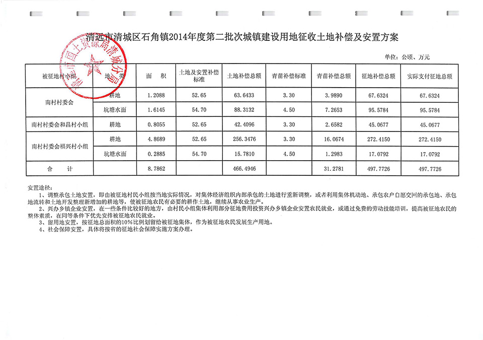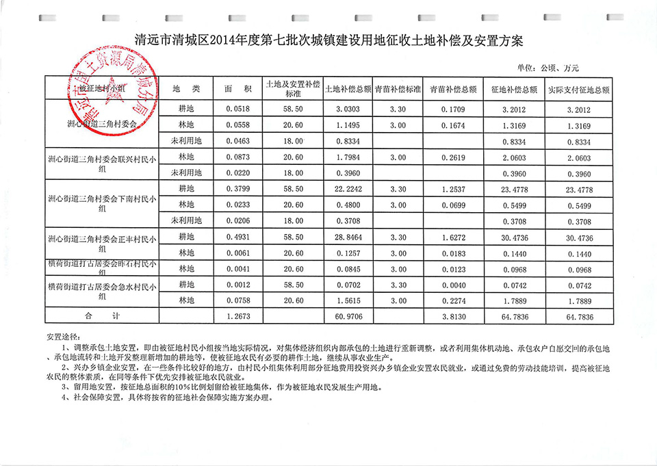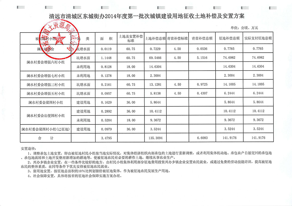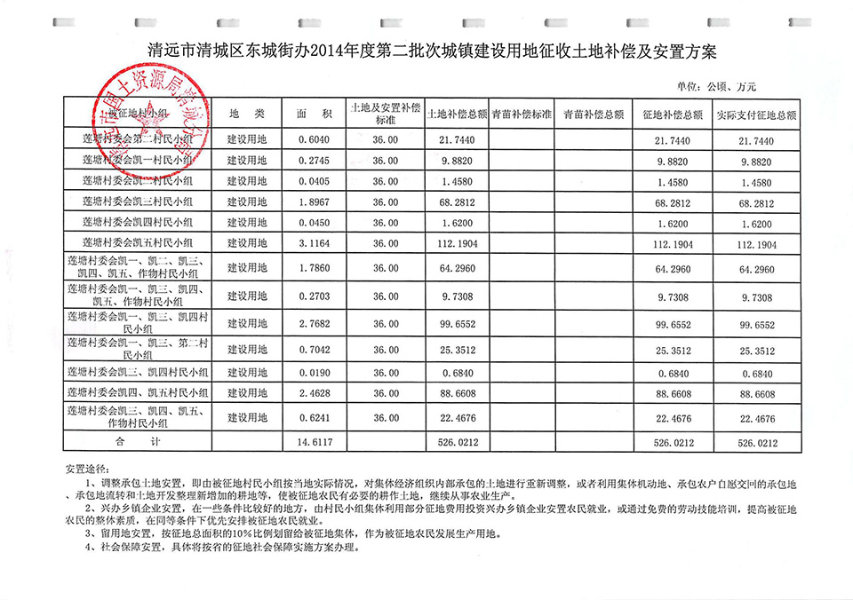 清城區(qū)2014年度第二批次征地補(bǔ)償安置方案