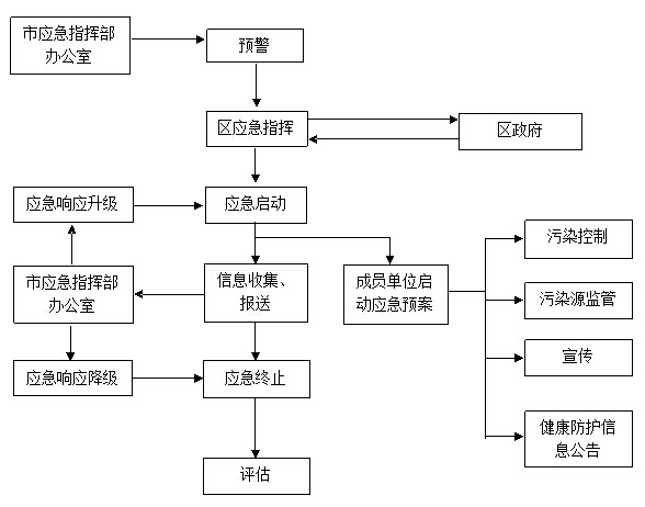 區(qū)應(yīng)急指揮部下設(shè)辦公室。辦公室設(shè)在區(qū)環(huán)保局,由區(qū)委宣傳部、區(qū)應(yīng)急辦和區(qū)環(huán)保局組成。