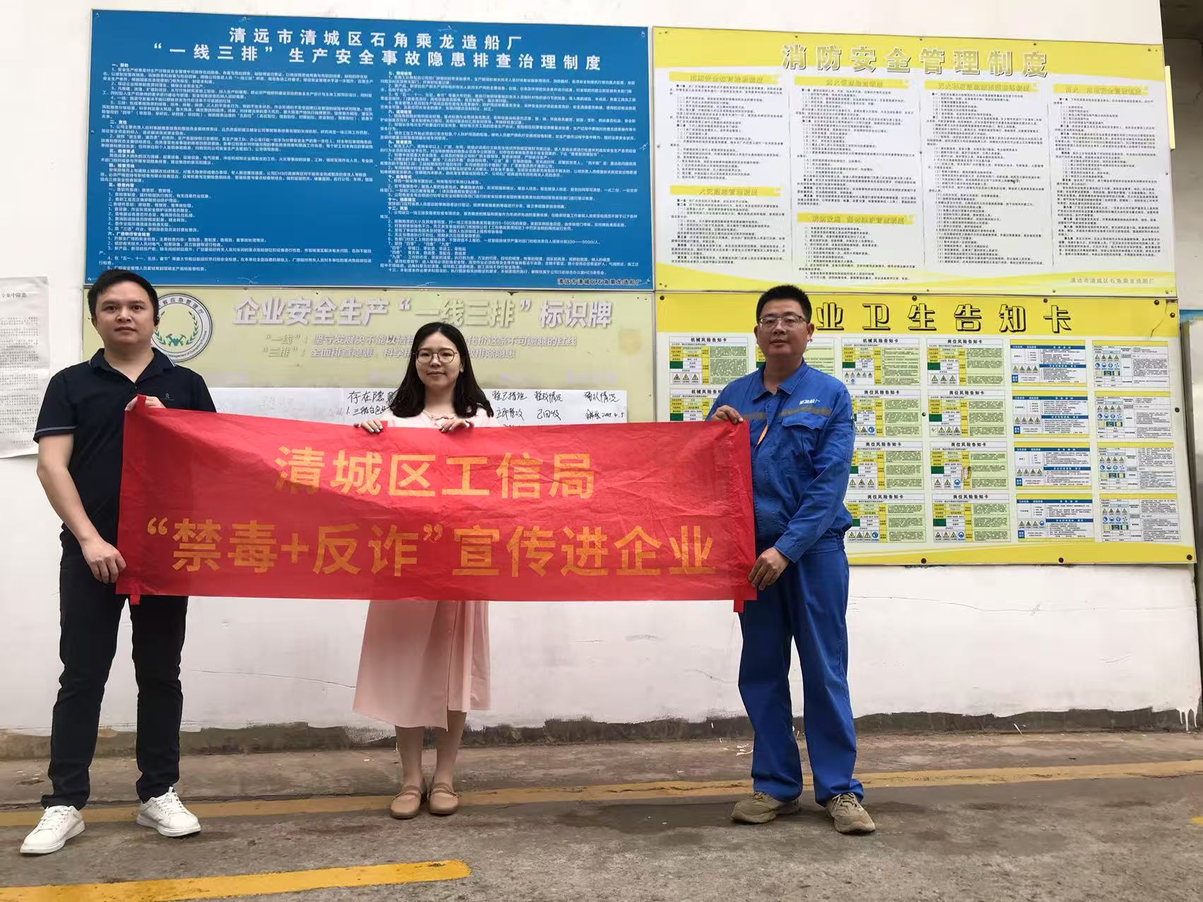 為落實清城區禁毒和反詐宣傳工作,進一步增強企業的禁毒和反詐意識,營造良好的氛圍,2025年4月,區工業和信息化局有關人員到清遠市清城區石角乘龍造船廠、贏之城廣場、華潤萬家超市開展禁毒和反詐宣傳,工作人員向企業員工宣傳禁毒和反詐知識,派發宣傳小冊子,讓企業管理人員和員工了解毒品的危害性和反詐的重要性。