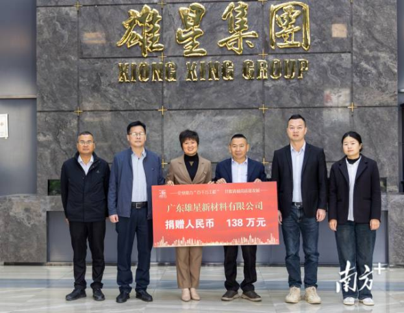 3月17日上午,清城區源潭鎮舉行了一場意義非凡的捐贈儀式:廣東雄星新材料有限公司(以下簡稱“雄星公司”)向清城區慈善會定向捐贈138萬元,專項用于源潭鎮推進“百縣千鎮萬村高質量發展工程”(以下簡稱“百千萬工程”),助力城鄉區域協調發展和綠美廣東生態文明建設。清城區人大常委會主任虞衛旗,源潭鎮黨委書記劉衛民、鎮長陶丹等見證捐贈儀式。