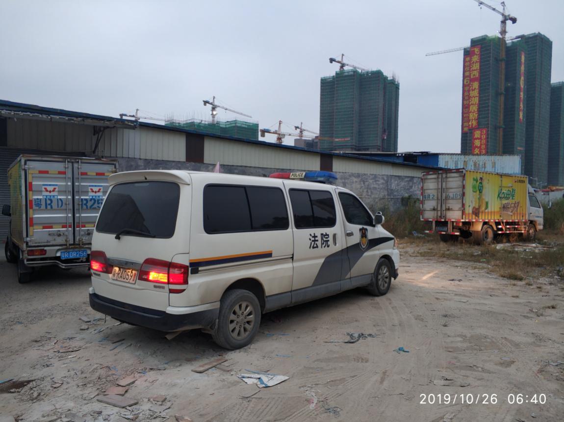 周六,本來是休息日 ,但對于執行干警來說,工作從來不分時間,不管是“白加黑”,還是“5+2”,能夠在第一時間查扣到被執行人財產從而順利執結案件,才是第一要務。早上6點40分,執行干警來到被執行人車輛停放的停車場,看到被執行人的兩臺車都在,米法官提著的心放下了一半。經過向停車場看守人了解,兩輛車一直都是旁邊一個貨倉使用的,早上都會裝貨出車。