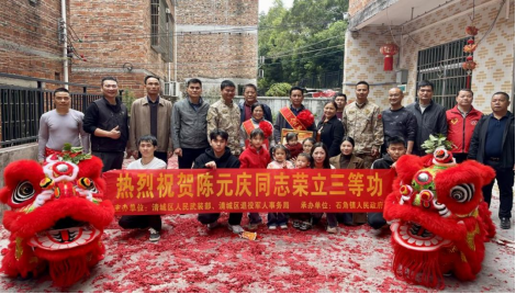 近日,區退役軍人事務局聯合區人民武裝部、相關鎮街組成聯合慰問團,前往石角鎮、源潭鎮、龍塘鎮,為榮立三等功的現役軍人家庭登門送喜報和慰問金,以隆重儀式彰顯軍人榮譽,讓尊崇之風浸潤城鄉。