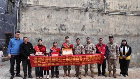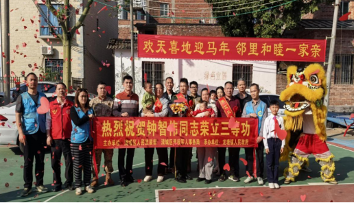 2月13日,慰問團繼續前往龍塘鎮,為武警部隊現役軍人鐘智偉家庭送上三等功喜報與慰問。鐘智偉已在武警部隊服役14年,多年來忠誠擔當、作風優良、扎根崗位、刻苦訓練,因工作表現突出榮立個人三等功。家屬接過喜報,倍感光榮與自豪,對部隊的培養和地方的關心表示感謝,將繼續全力支持孩子在軍營安心服役、再立新功。
